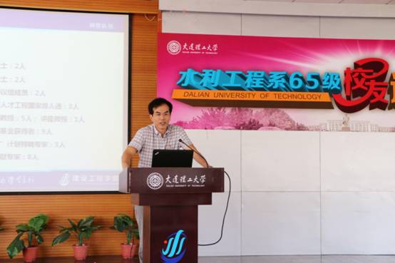 原水利工程系党总支书记卜华仁教授发表了热情洋溢的讲话,为65级校友上了精彩一课。年逾八旬的卜华仁教授同已迈入古稀之年的同学们一起回忆起50年前在学校学习生活的场景,回顾浓浓的师生情、同窗情。他在讲话中为我们伟大的祖国取得举世瞩目的辉煌成就感到无比振奋,特别是在观看了抗日战争暨世界反法西斯战争胜利70周年阅兵和各种纪念活动后,为祖国的强大由衷骄傲,表示坚决拥护以习近平同志为核心的党中央的英明领导,和65级校友们一起,为祖国富强和社会稳定健康发展做出自己应有的努力。