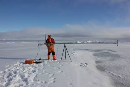 王庆凯是我校海岸和近海工程国家重点实验室李志军教授团队的在读博士生,2014年曾参加中国第六次北极科学考察。本次考察主要承担的是海冰走航观测、基本物理和力学性质、海冰生消过程、冰面融池辐射观测等研究项目的科学现场考察任务。在现场考察过程中,王庆凯克服北极恶劣的天气条件,与其他考察队员密切合作,圆满完成了各项工作,获得了大量珍贵的第一手北极海冰现场观测数据。
