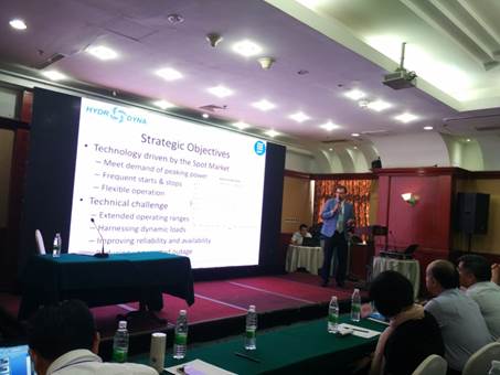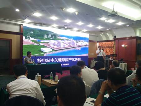 开幕式后,西班牙加泰罗尼亚技术大学Xavier Escaler副教授、哈尔滨电机厂有限责任公司副总工程师覃大清研究员、沈阳鼓风机集团核电公司总经理于洪昌教授级高工作了大会特邀报告,12位国内知名专家、教授作了大会报告,其中大连理工大学水利工程学院宿晓辉教授做了题为“海流能增压制淡装备的研制”的精彩报告。